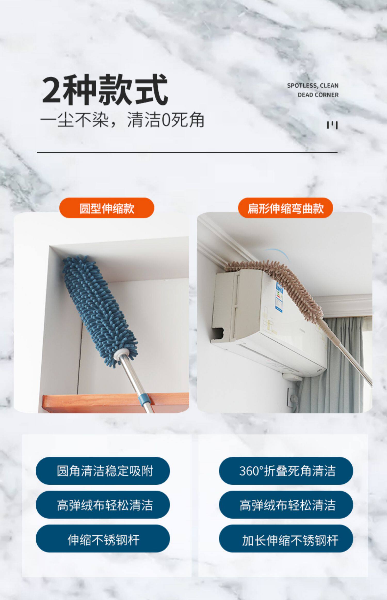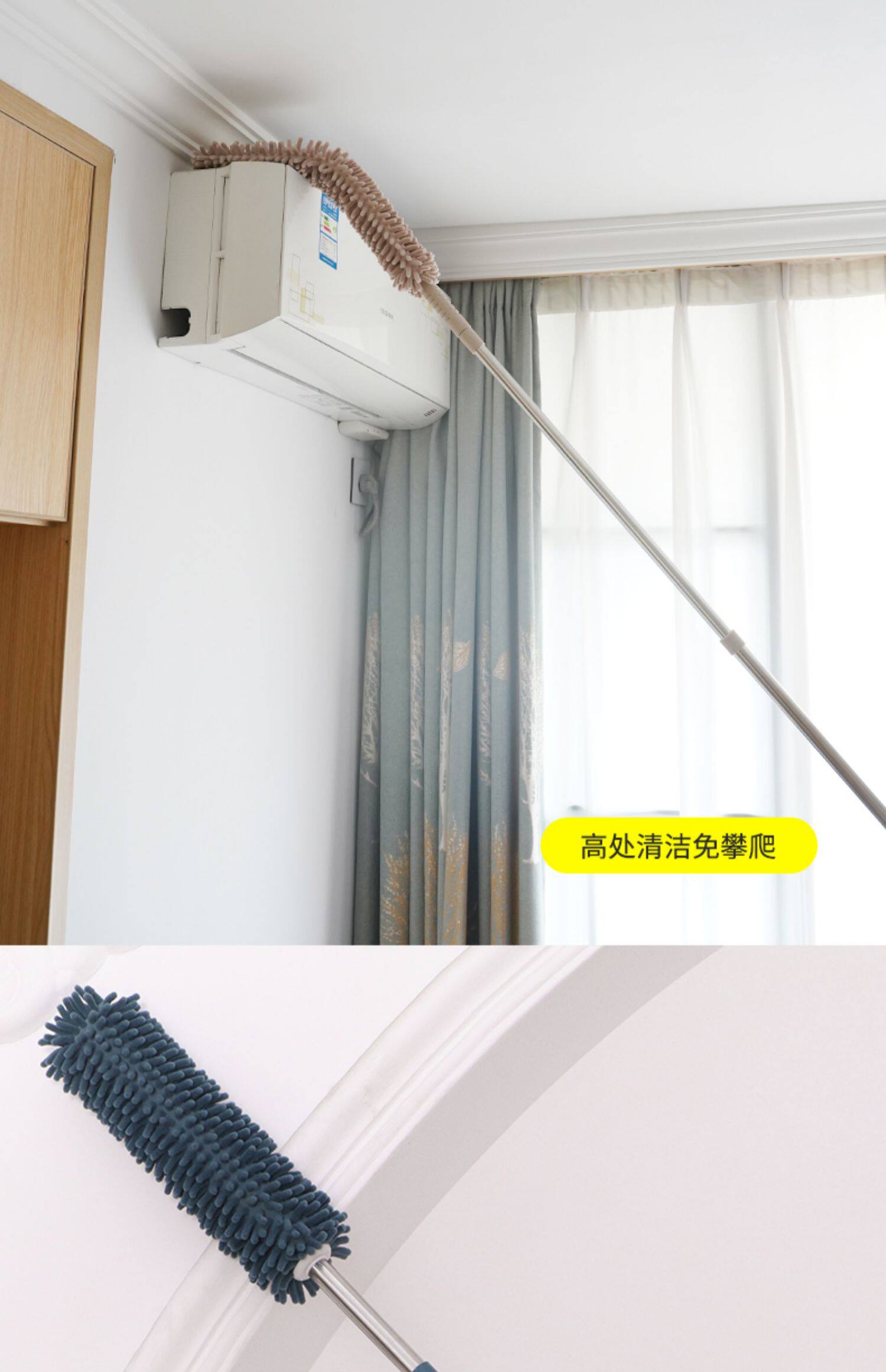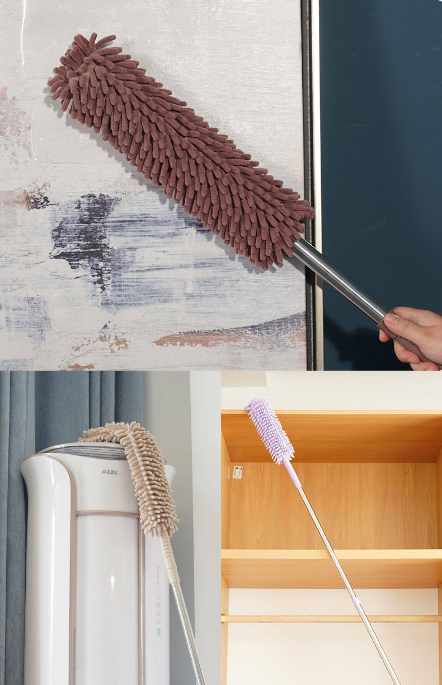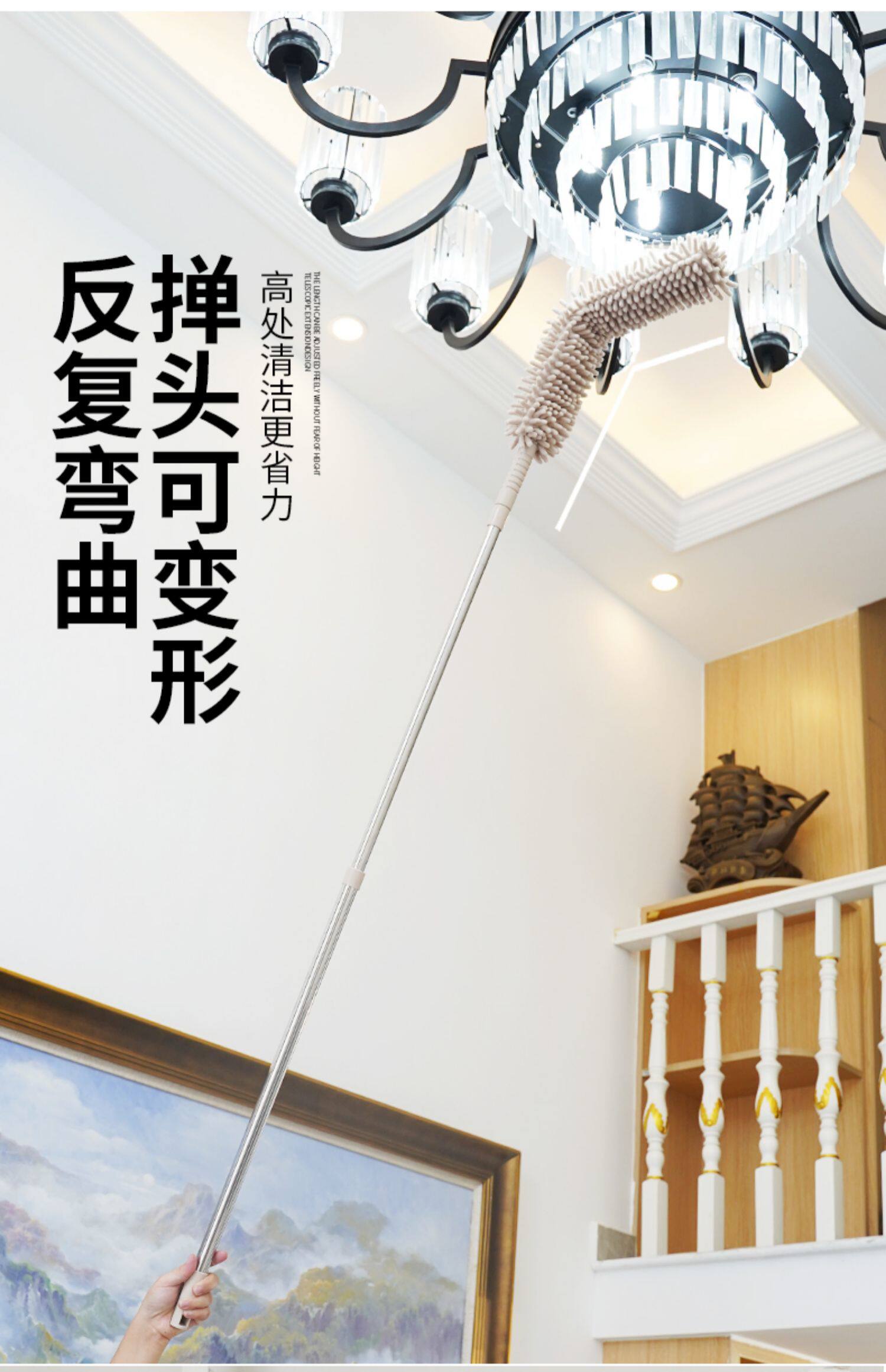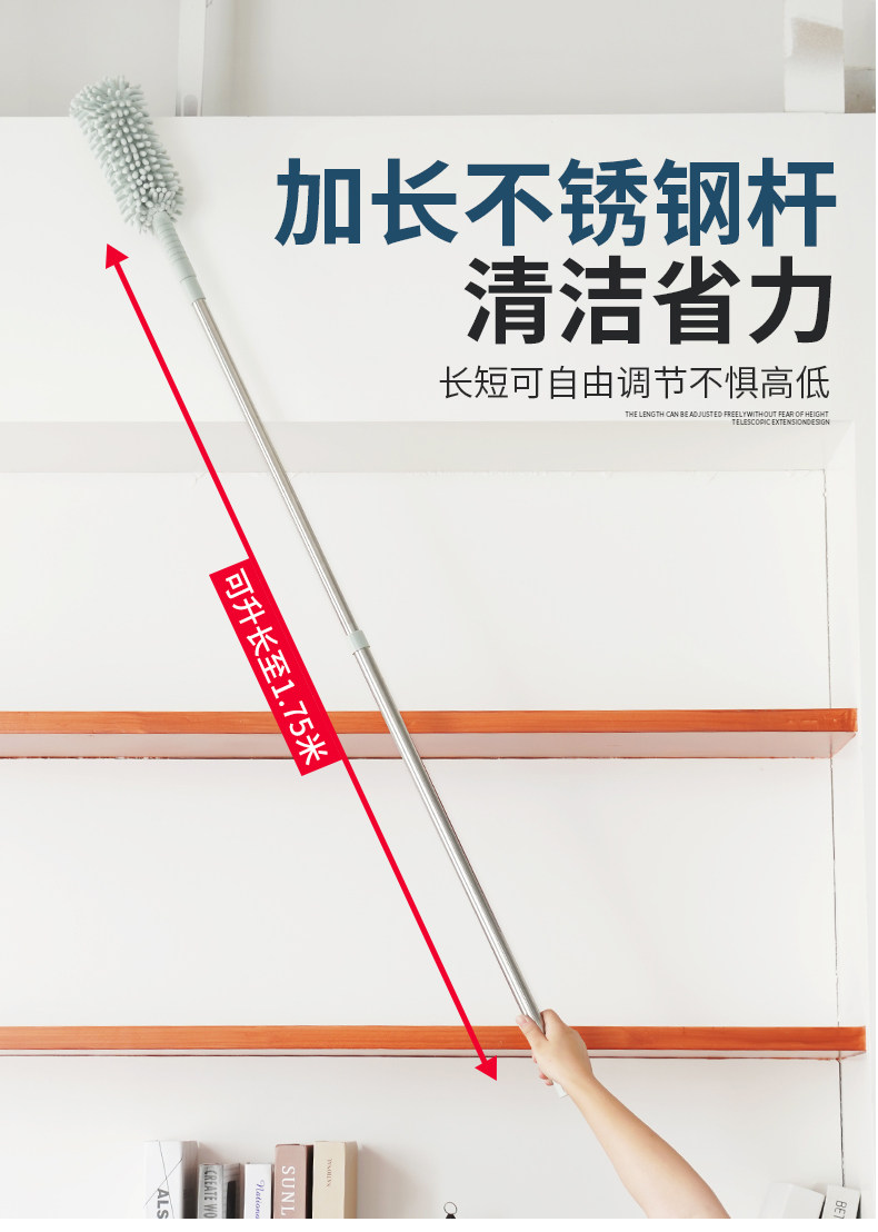 깃털 먼지떨이 청소 장갑 가정용 길이 조절 가능 천장 청소 거미줄 제거 대청소 먼지 털이개