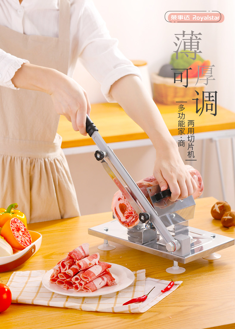 삼겹살 슬라이서 가정용 업소용 육절기 냉동고기 절단 가능 양고기 롤 떡 써는 칼 겸용 수동 고기 절단기