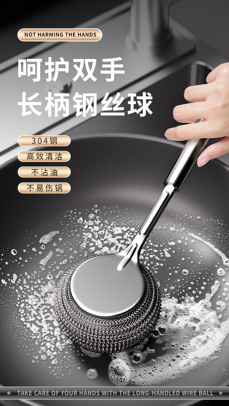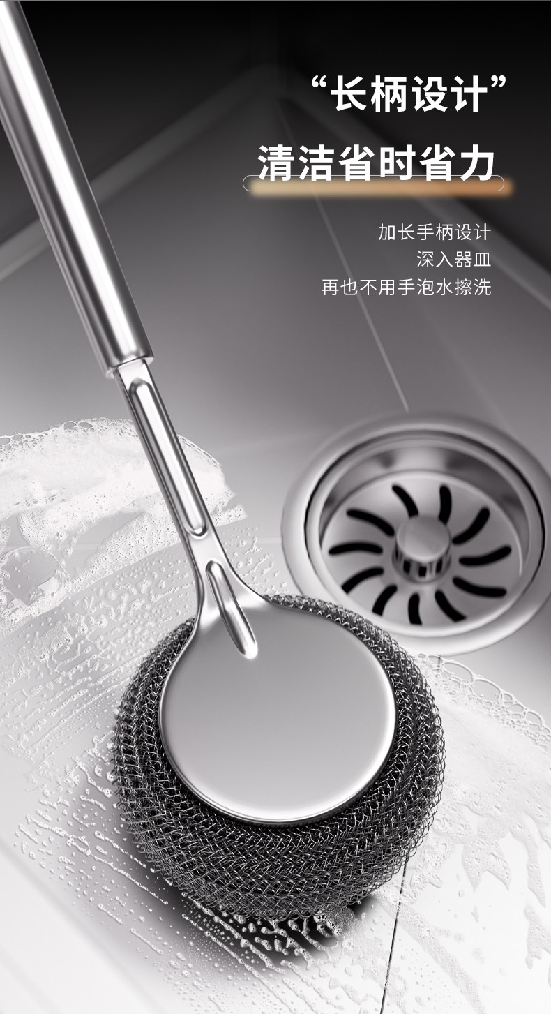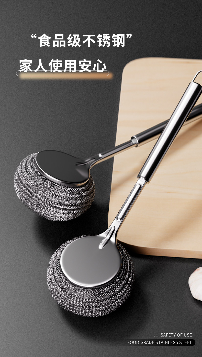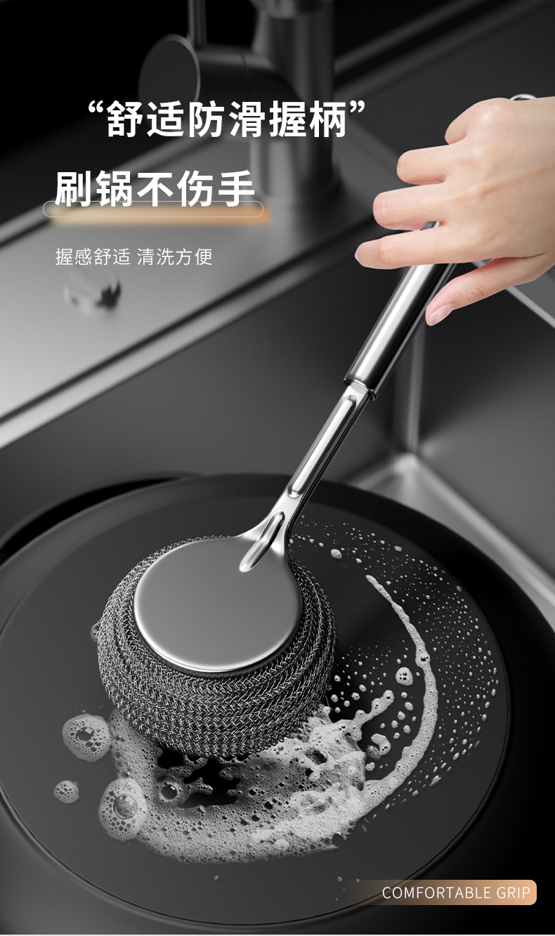 스테인리스 스틸 냄비 세척 솔 긴 손잡이 설거지 브러시 코팅 팬 보호 주방 수세미 세트
