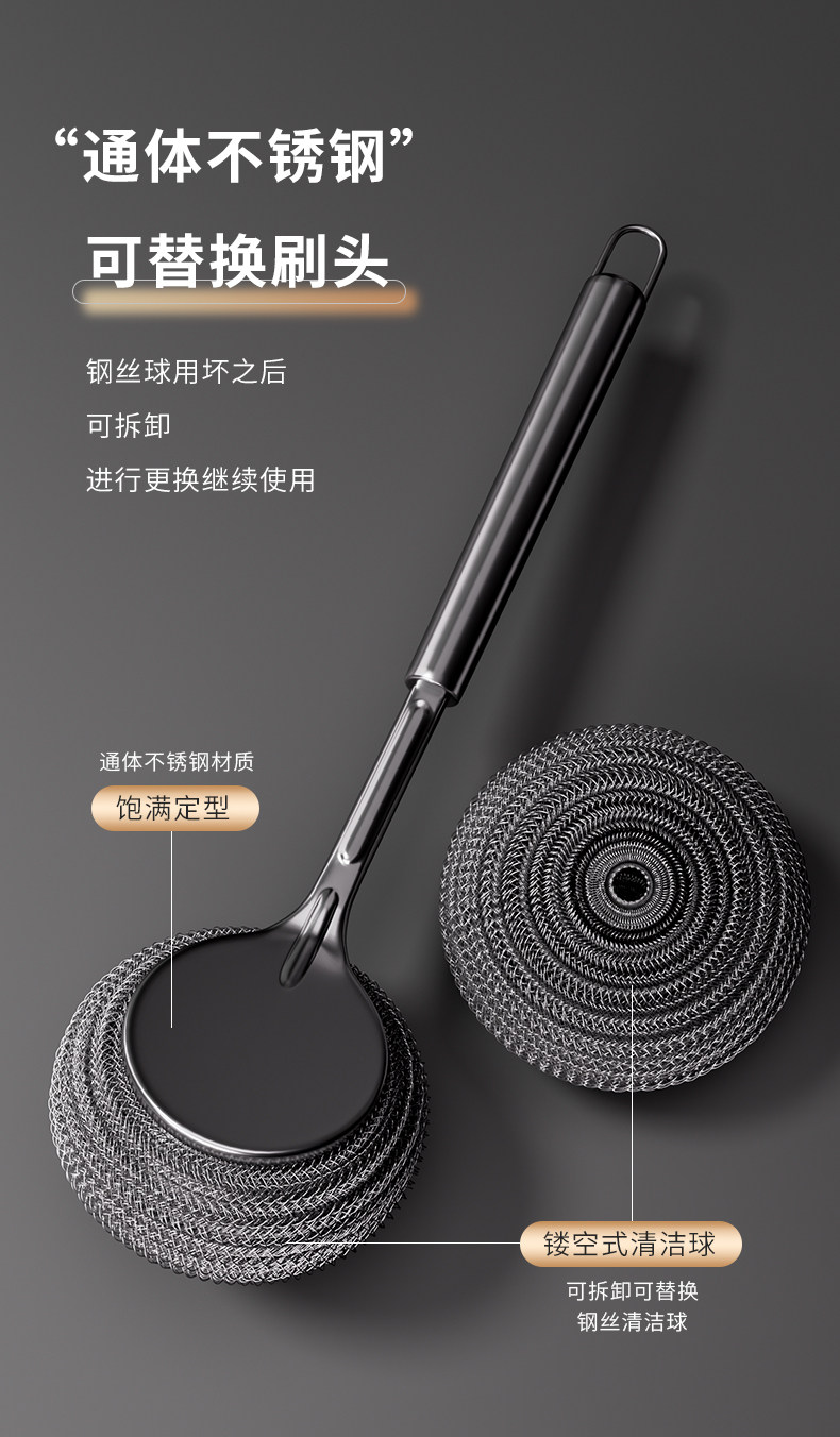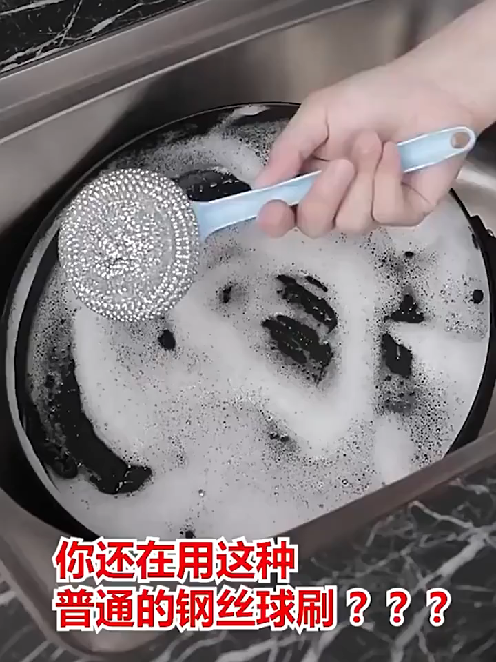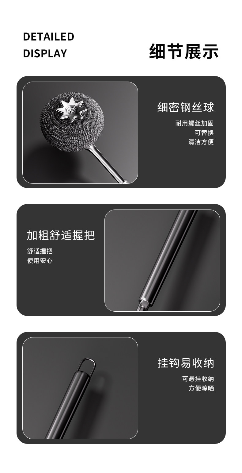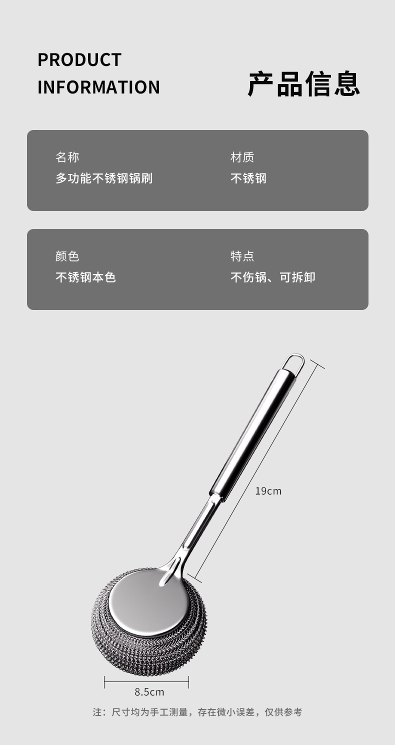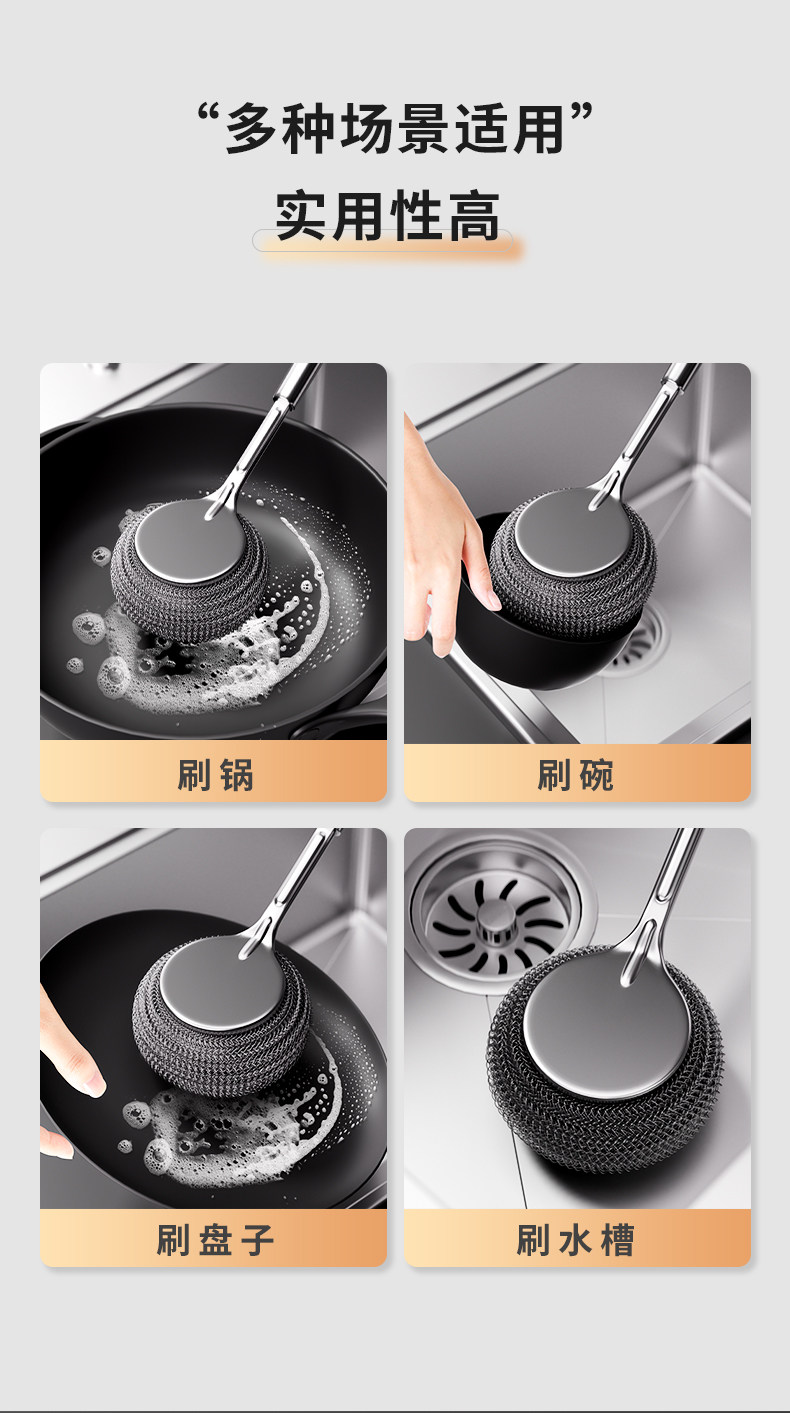 스테인리스 스틸 냄비 세척 솔 긴 손잡이 설거지 브러시 코팅 팬 보호 주방 수세미 세트