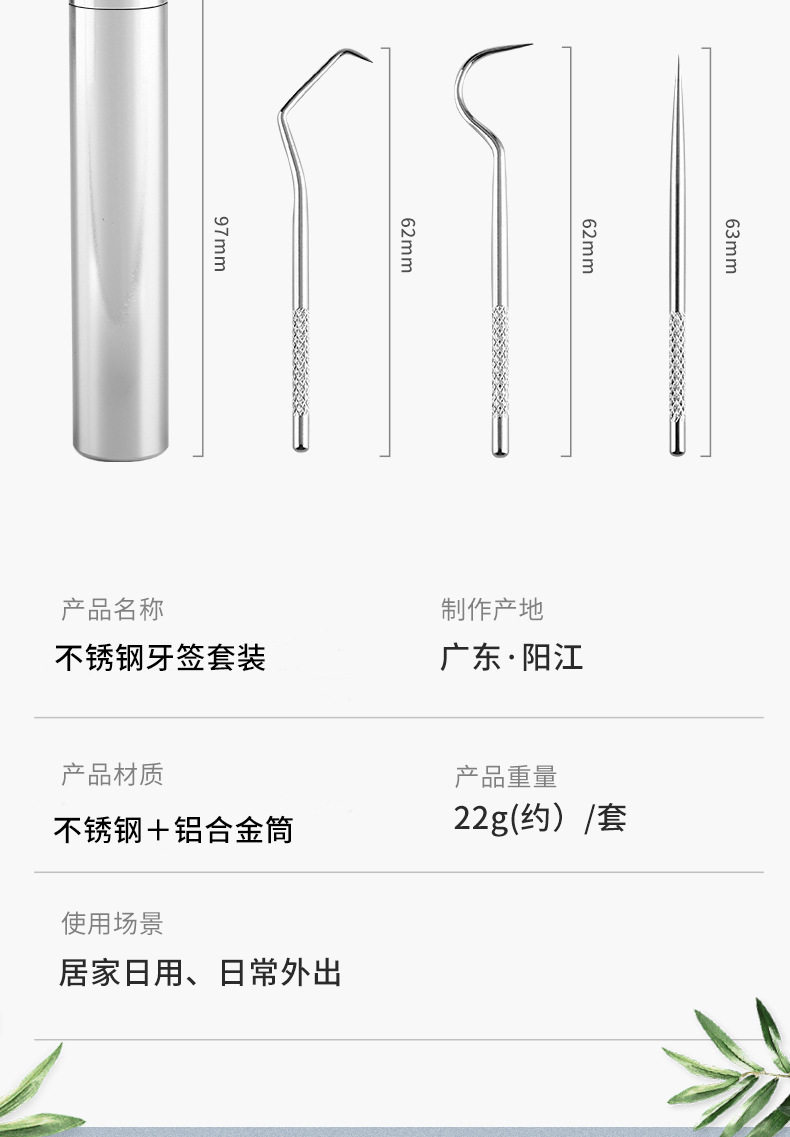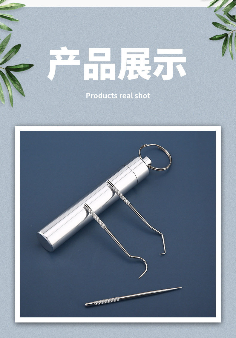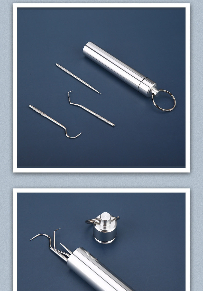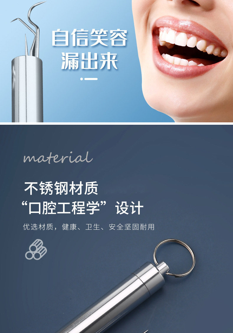 스테인리스 이쑤시개 휴대용 미니 치아 관리 세트 구강 청소 치실 후크 악세사리