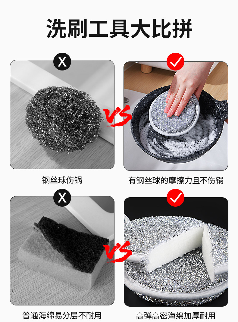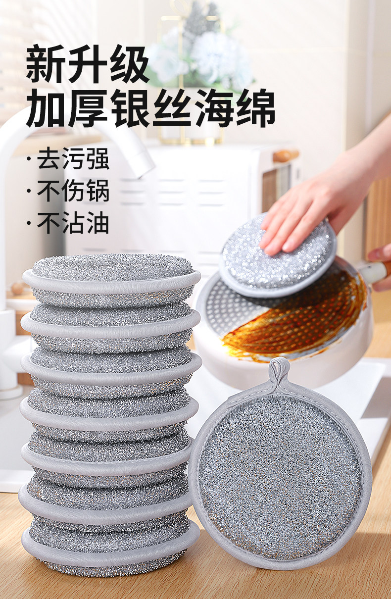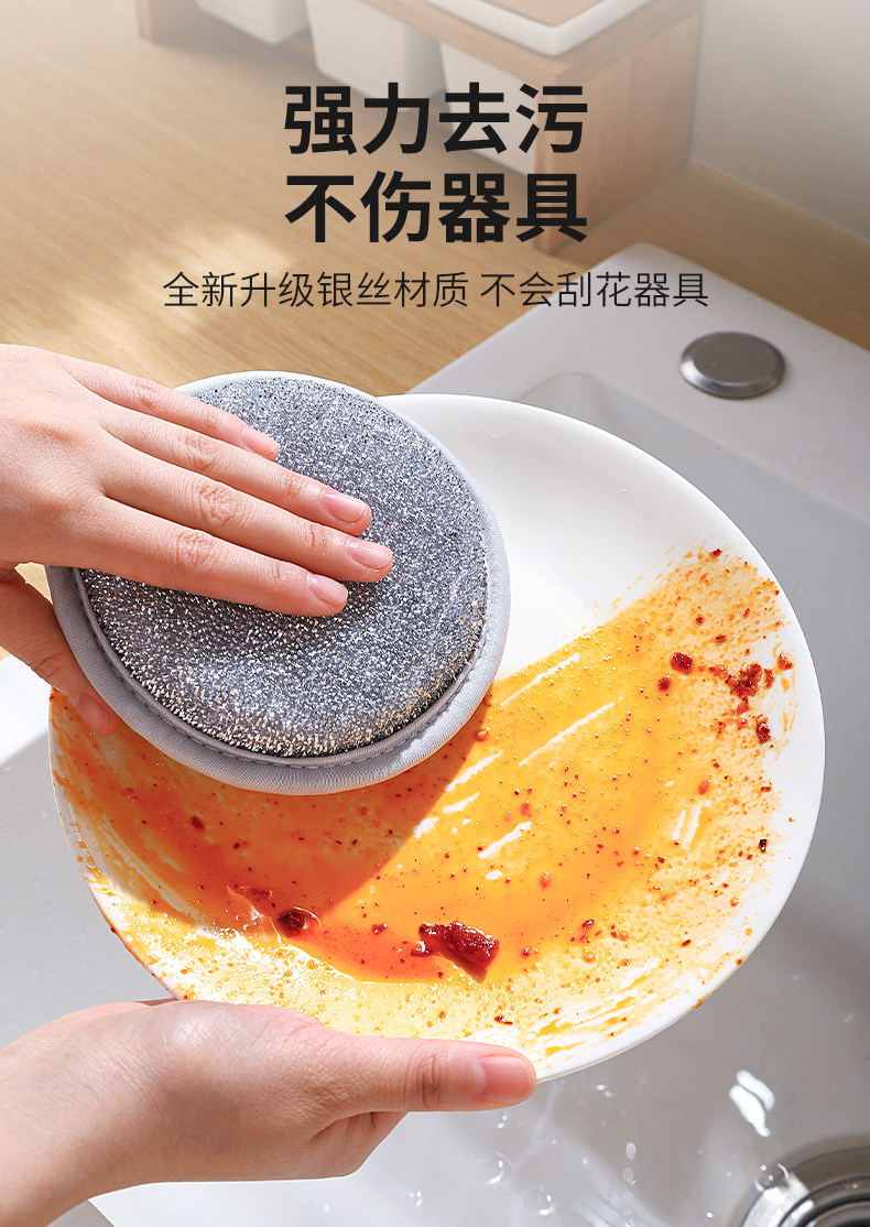 주방 세척 스틸울 스펀지 실버 스틸울 함유 설거지 내구성 좋은 기름때 제거 청소 스펀지