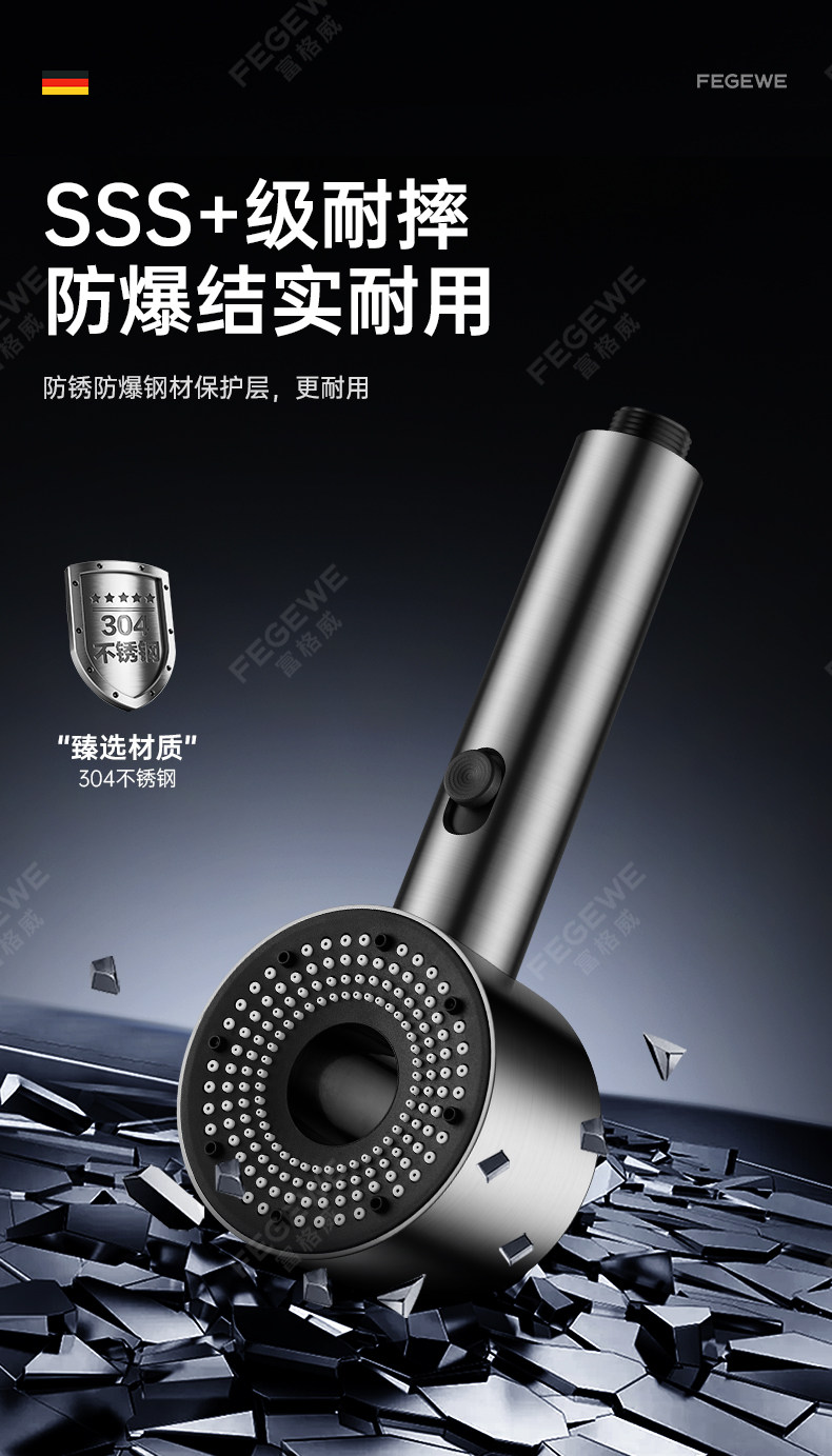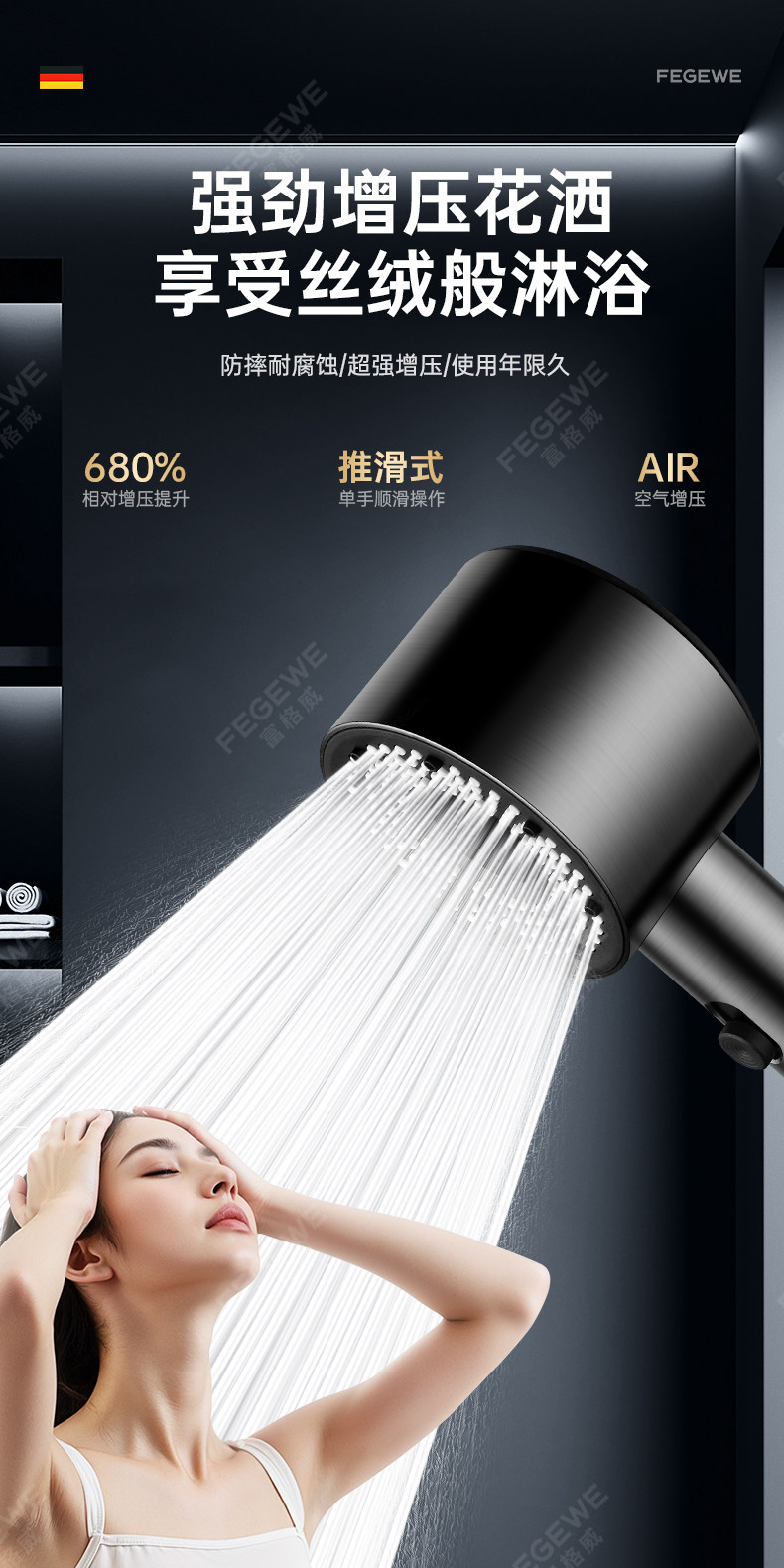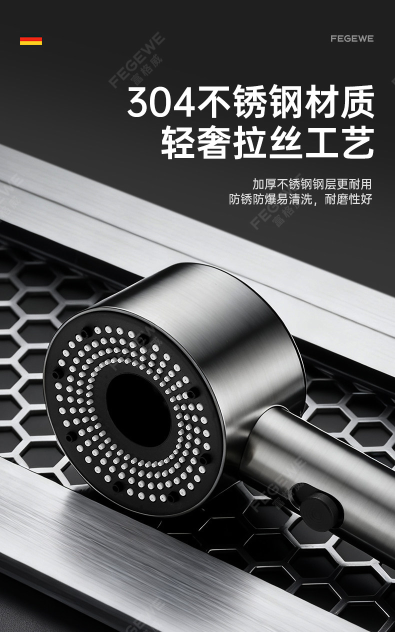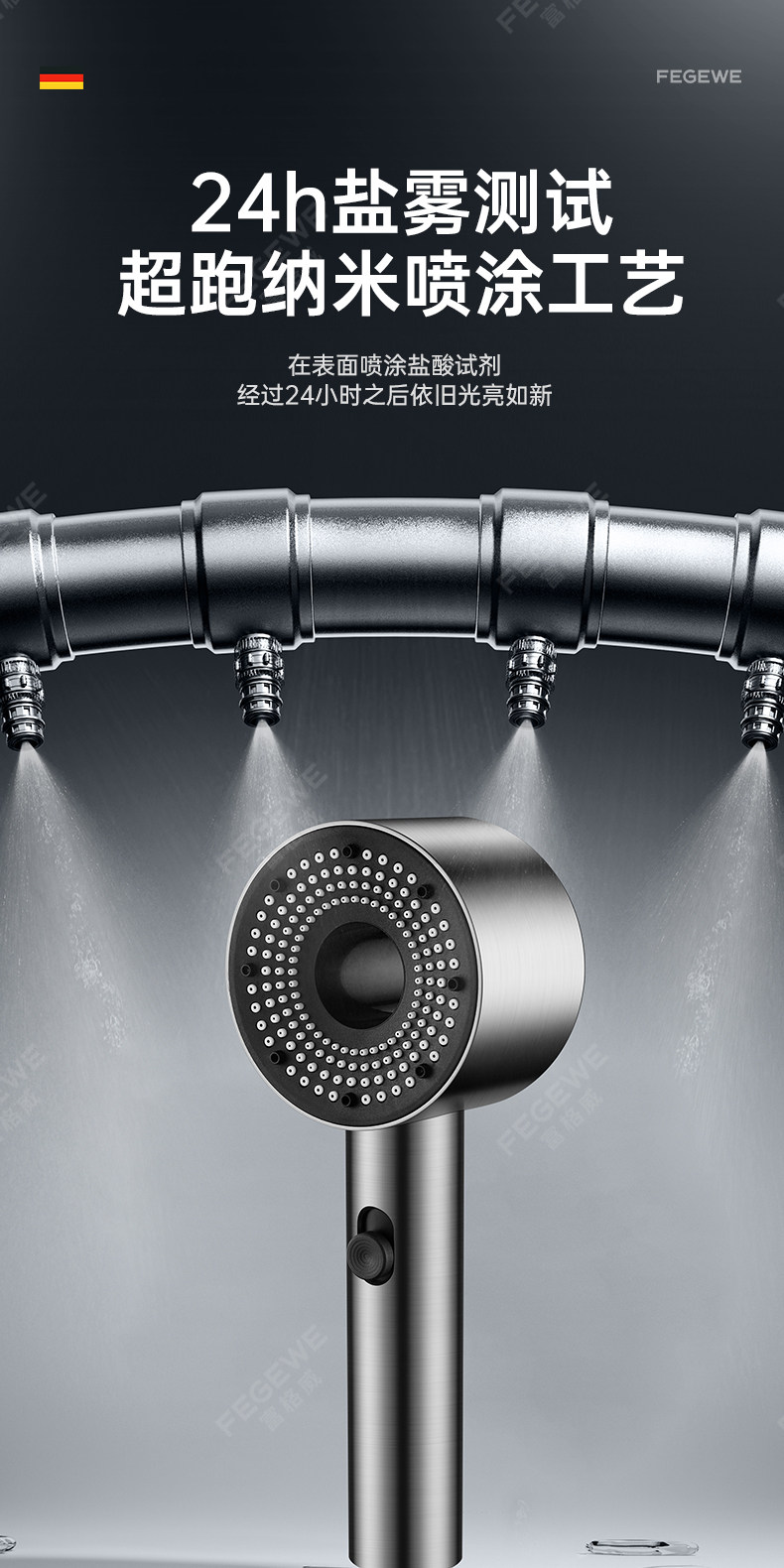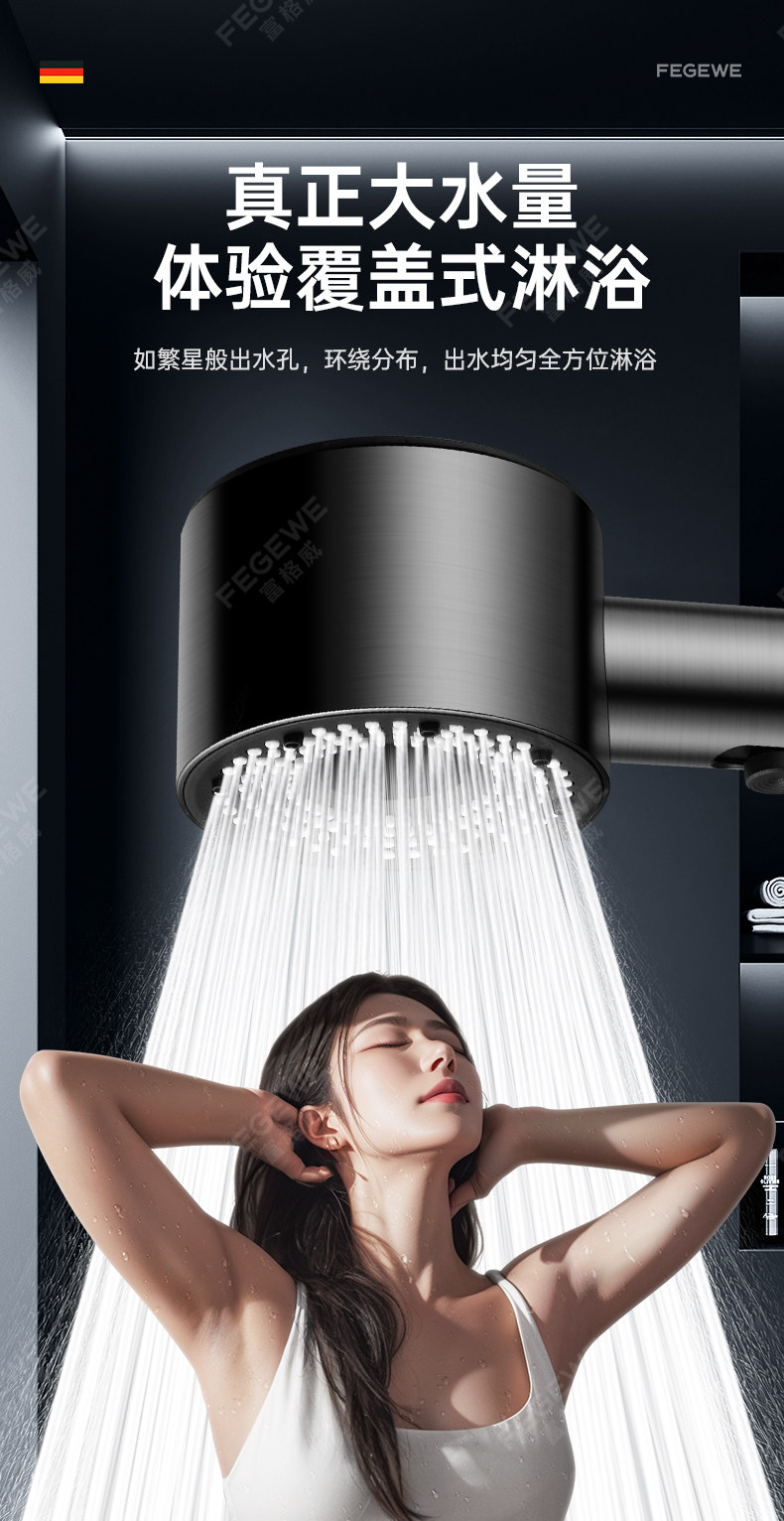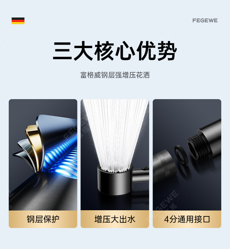 독일 기술 초고압 샤워기 헤드 (특허 정품) 건메탈 컬러 [튼튼한 강철 코팅 추가 버전]