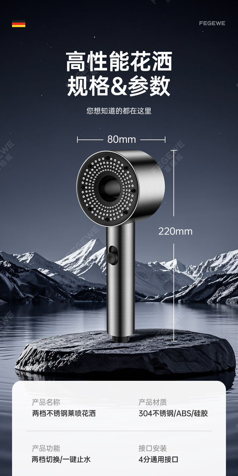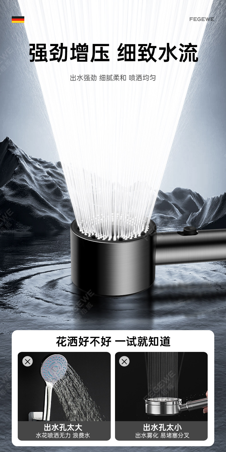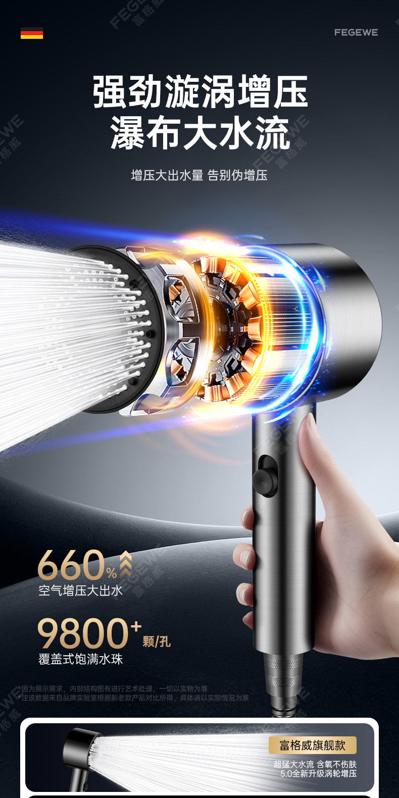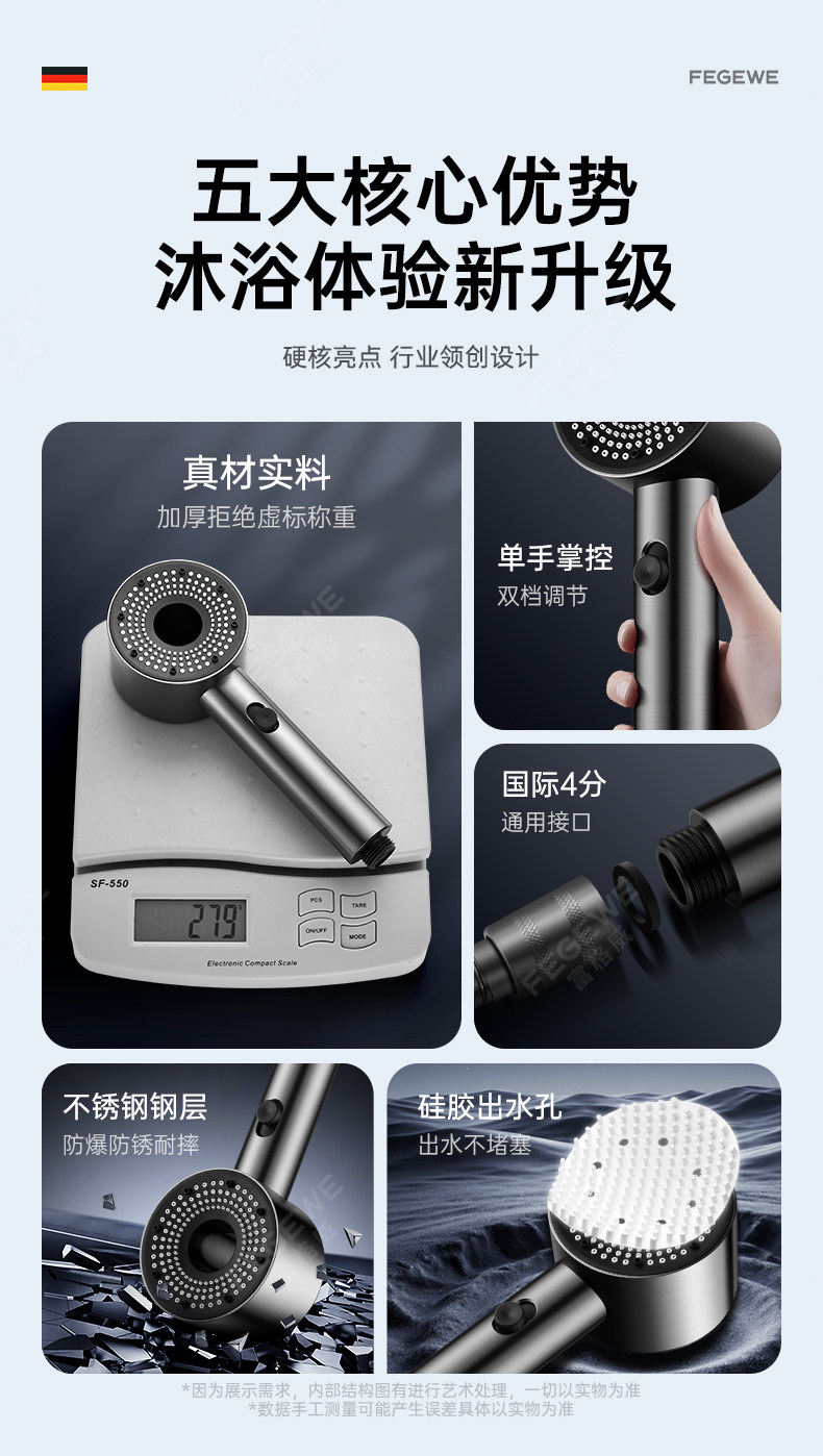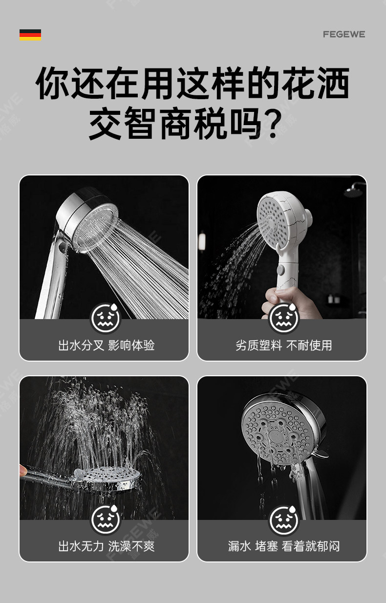 독일 기술 초고압 샤워기 헤드 (특허 정품) 건메탈 컬러 [튼튼한 강철 코팅 추가 버전]