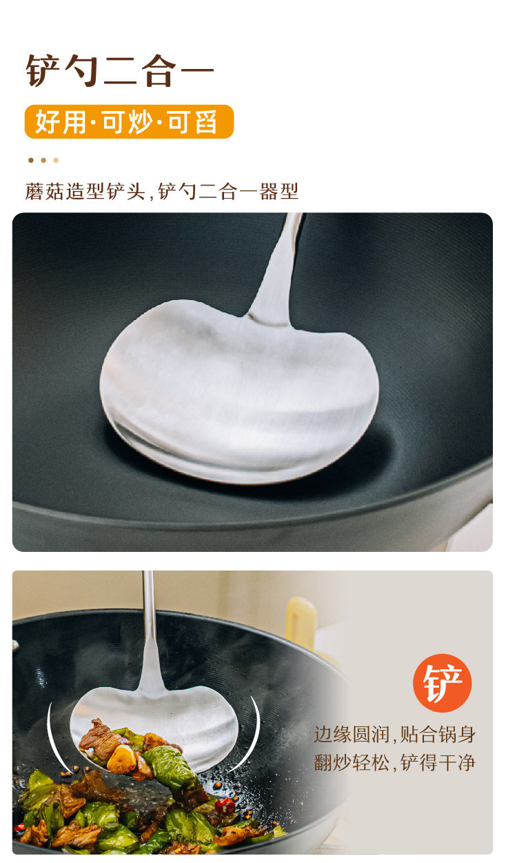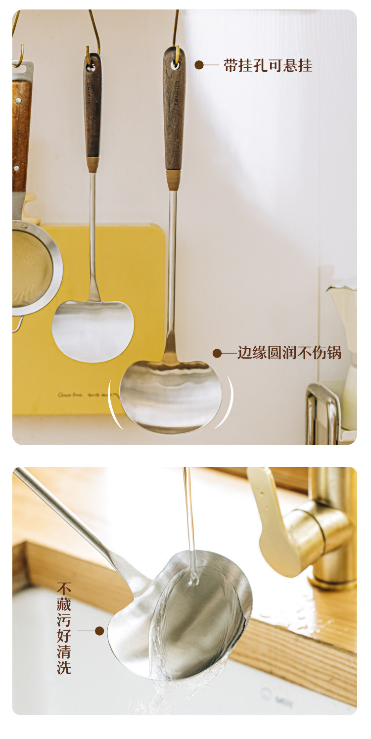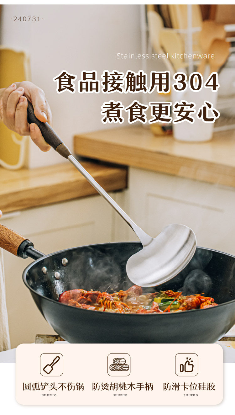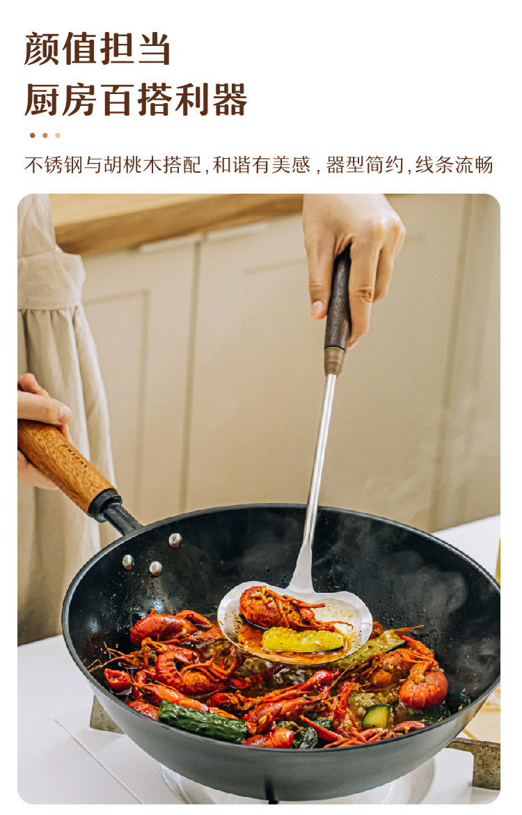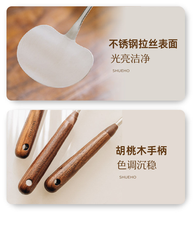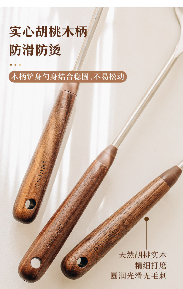 호두나무 손잡이 스테인리스 버섯 주걱 소형 가정용 철팬 전용 볶음 요리 도구 인스타감성