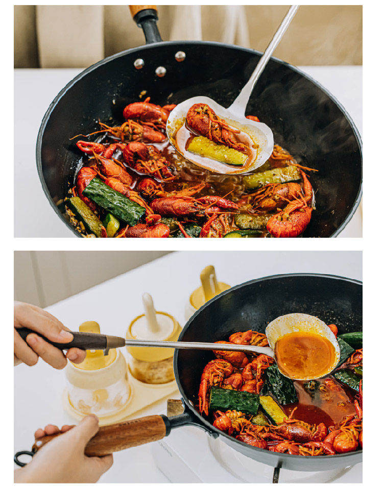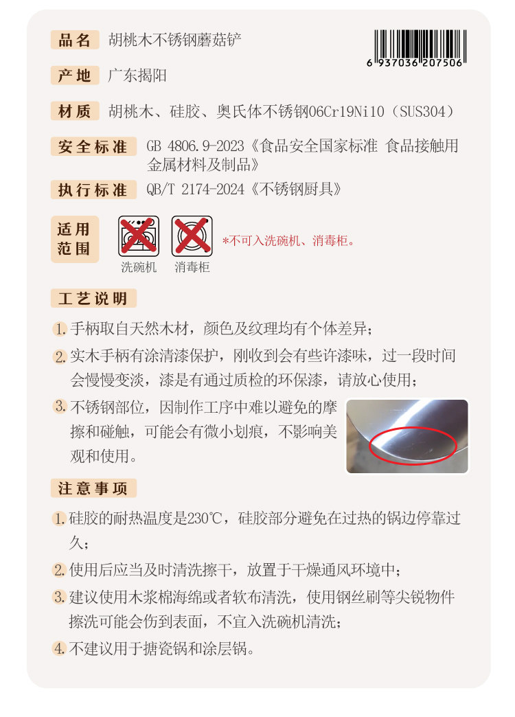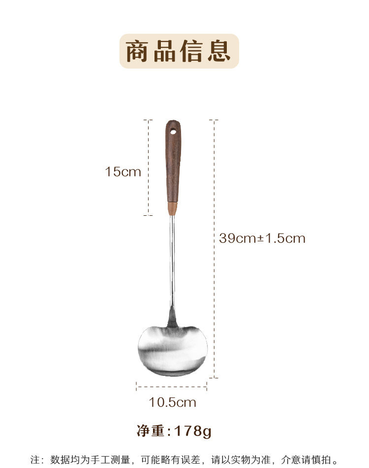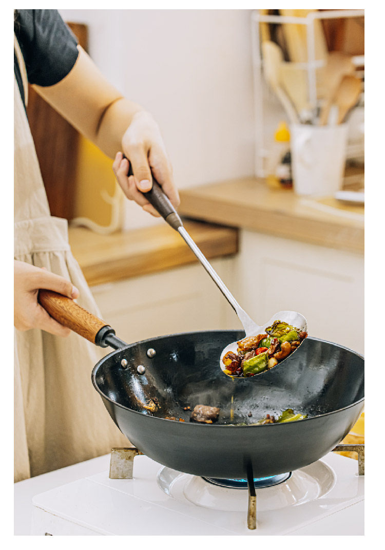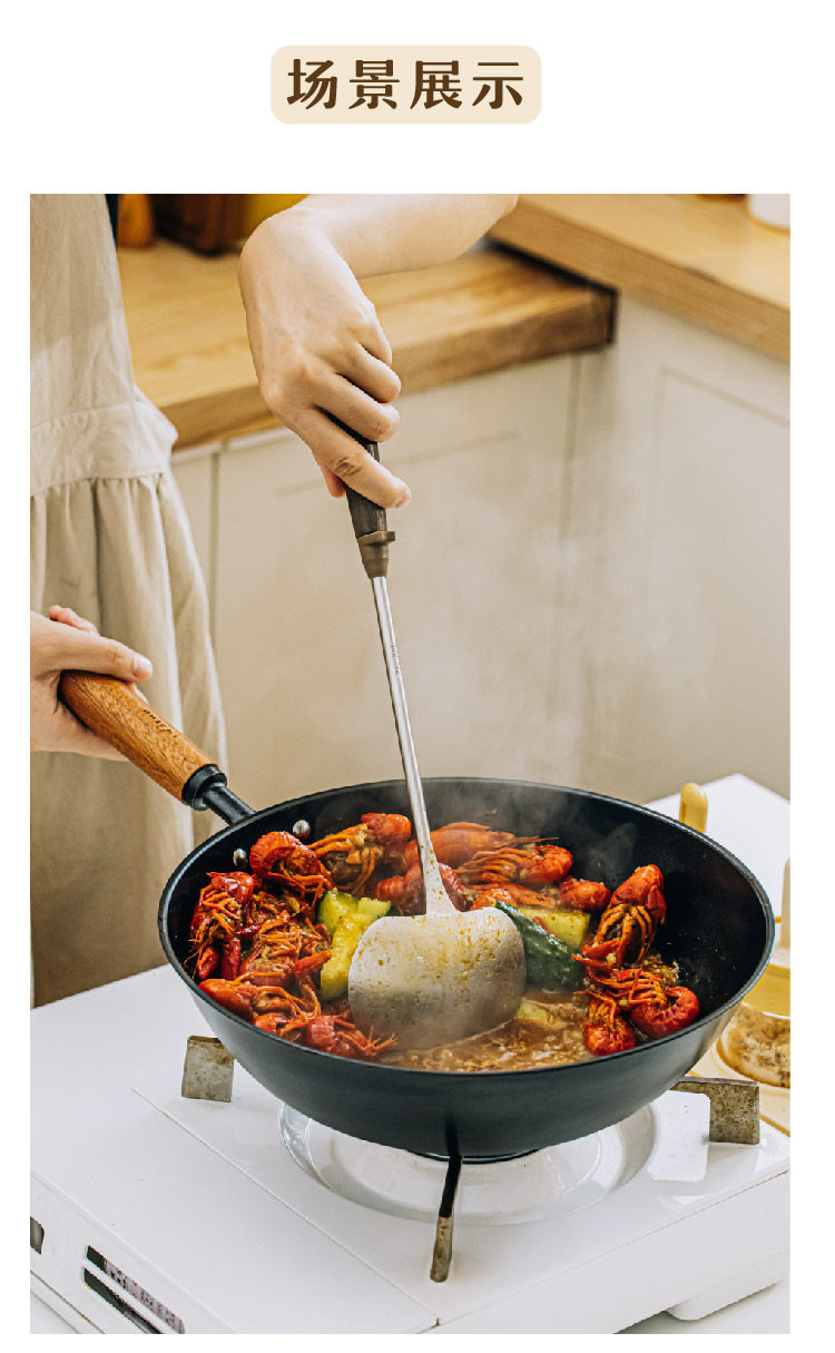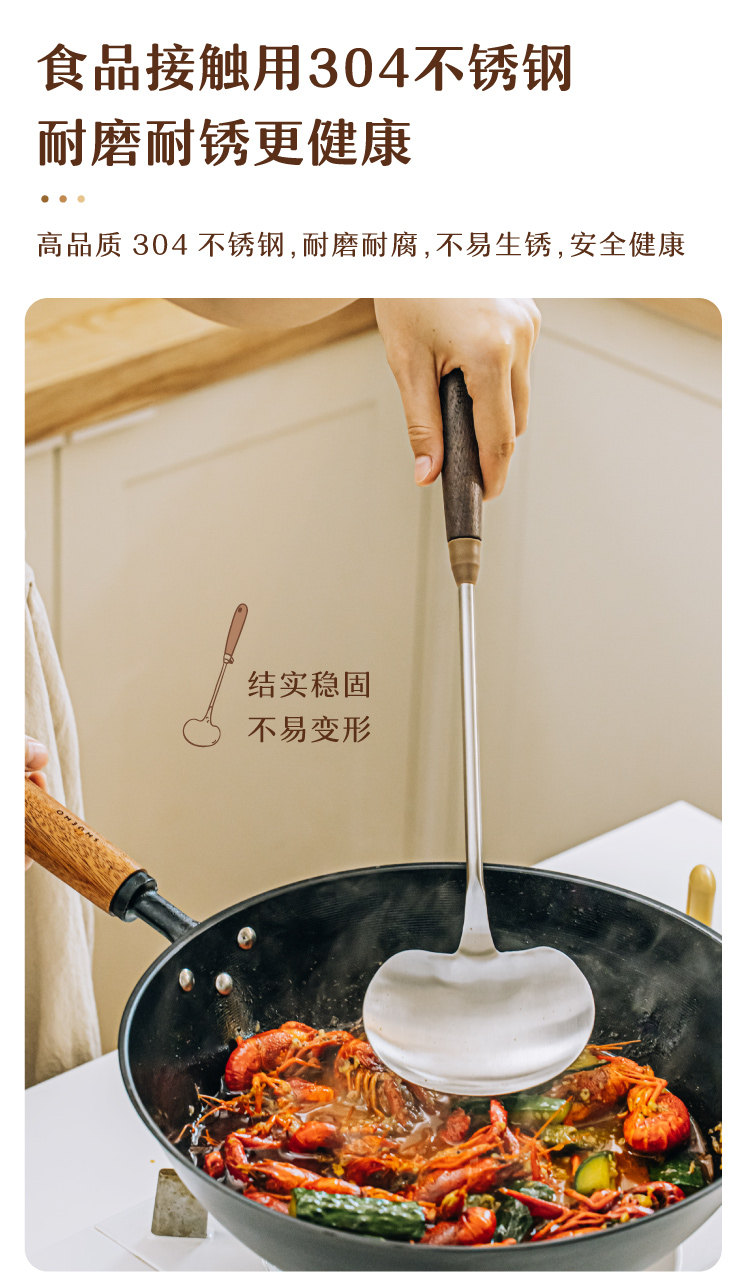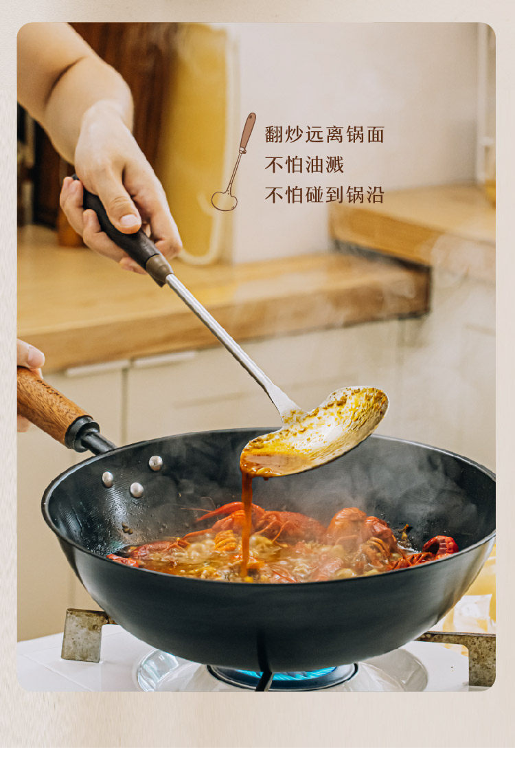 호두나무 손잡이 스테인리스 버섯 주걱 소형 가정용 철팬 전용 볶음 요리 도구 인스타감성