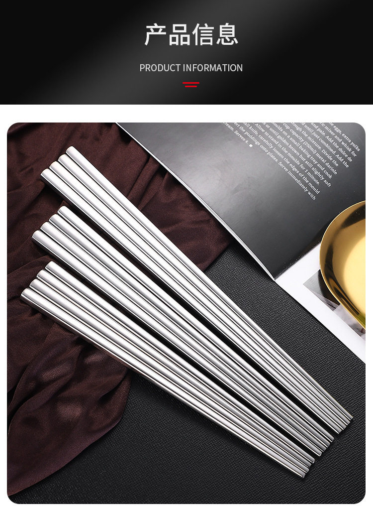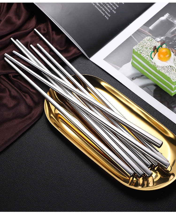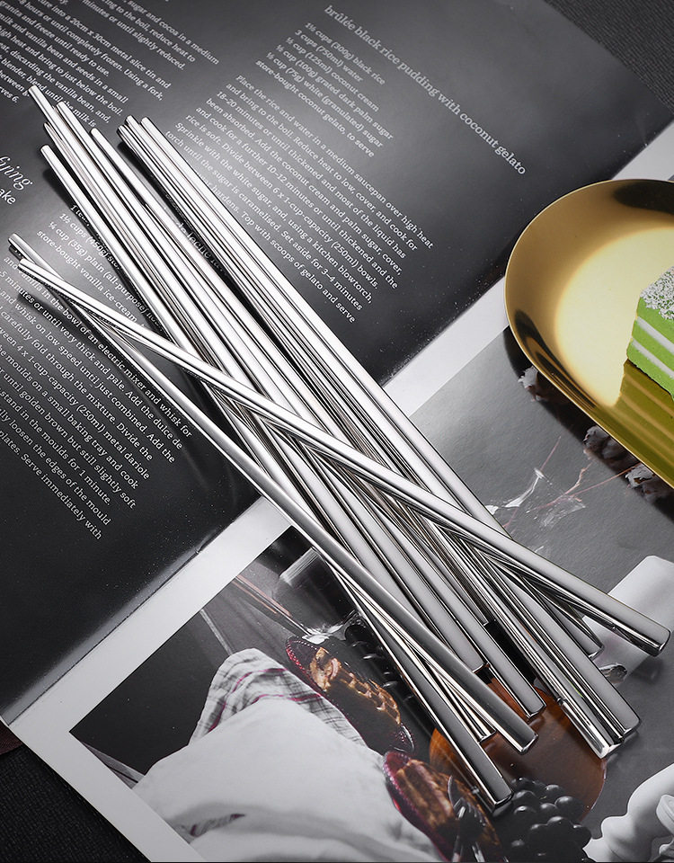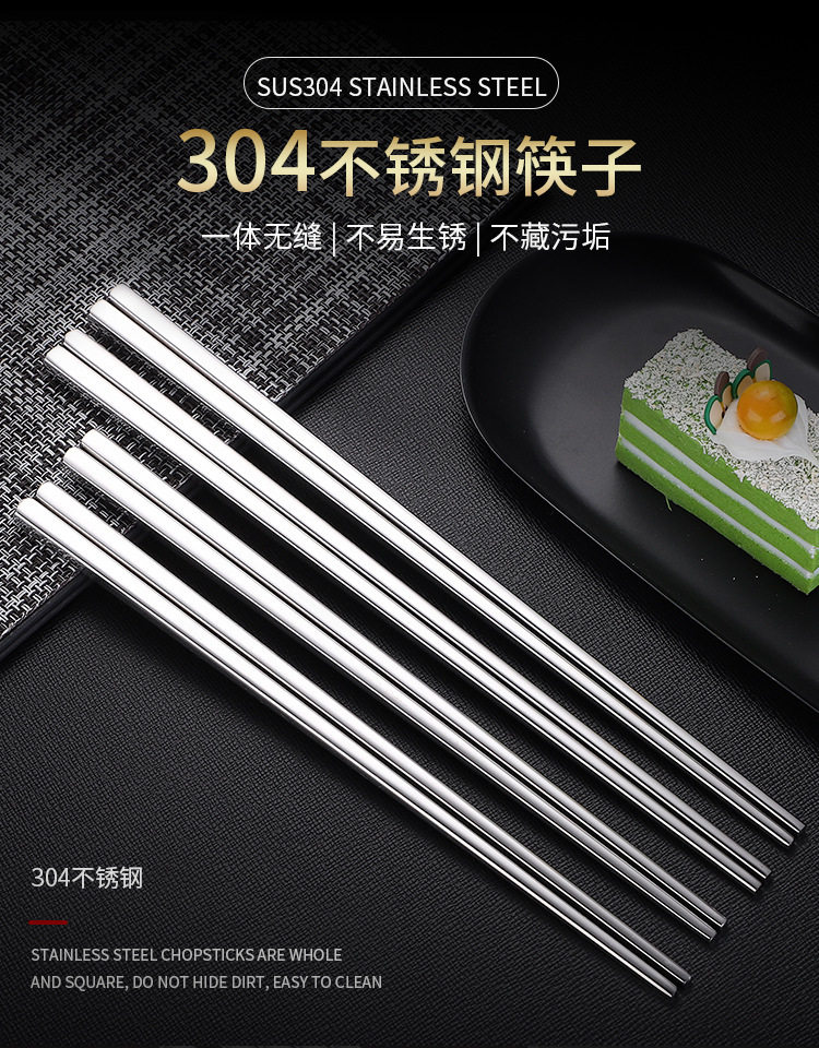 304 스테인리스 어린이 젓가락 세트 식기 각진 디자인 매끈한 마감 업소용 대량 주문 가능 10켤레